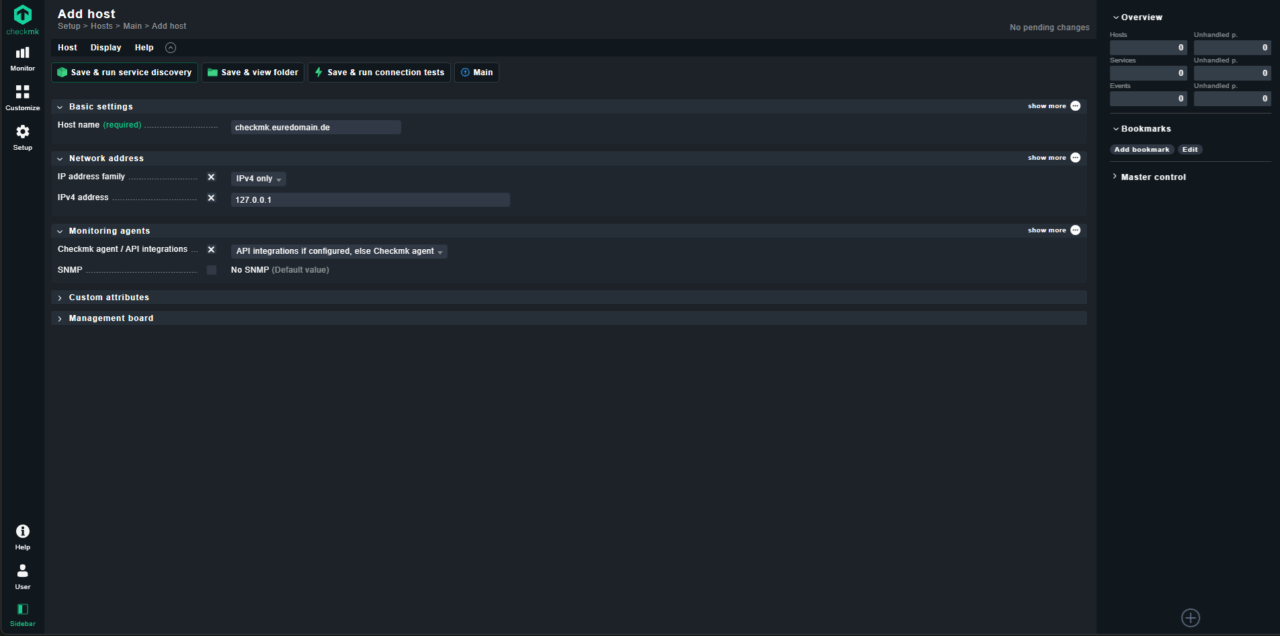 Nun können wir den ersten Agent hinzufügen und in dem Beispiel nehme ich CheckMK selbst. =)