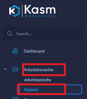 Dazu geht ihr als Admin auf “Arbeitsbereiche -> Register”.