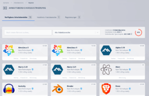 Mit einem Klick auf “Arbeitsbereiche” (oben links), könnt ihr zu den installierten Anwendungen wechseln: