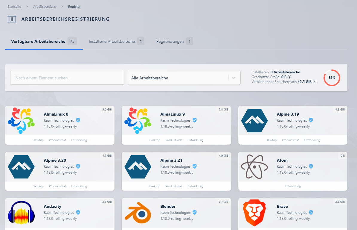 Kasm Workspaces ist eine Plattform zum Streamen von Desktops, Browsern und Anwendungen direkt in den Webbrowser, mit Fokus auf sichere, isolierte Sessions und Zero‑Trust‑Anwendungsfälle wie Remote Browser Isolation, DaaS und OSINT. Der Zugriff erfolgt clientlos über HTML5, während Workspaces kurzlebig bereitgestellt und zentral administriert werden können.