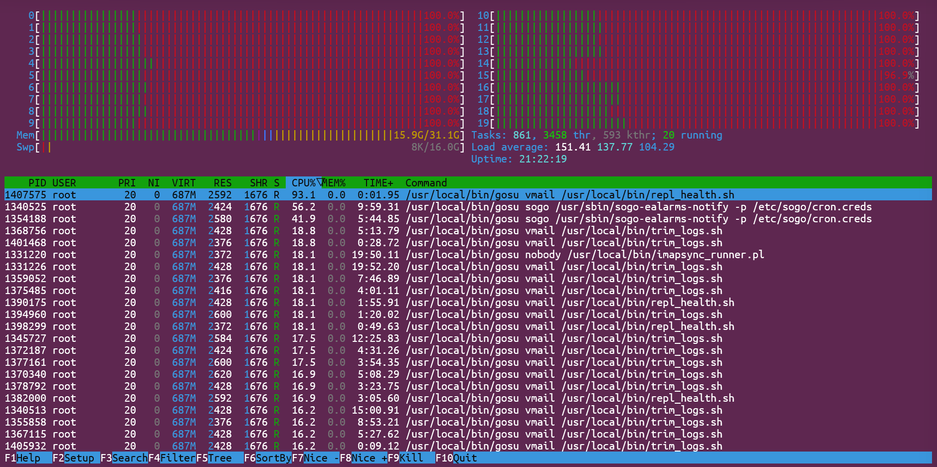 OK. – Die Mailcow Welt ist leider noch nicht ready für stromsparende CPUs. 😐