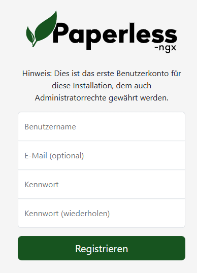 Wenn ihr dann auf eure Webseite “paperless.euredomain.de” geht, solltet ihr folgendes sehen: