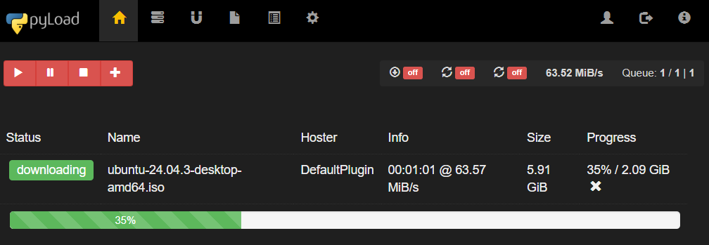 pyLoad ist ein freie und quelloffene Anwendung, die Downloads zentral verwaltet, Plugins nutzt und vollständig über eine Weboberfläche bedienbar ist. Ziel ist eine besonders ressourcenschonende, erweiterbare Lösung, die auf verschiedenster Hardware zuverlässig läuft. pyLoad hebt sich durch die große Anzahl unterstützter Hoster hervor, welche als Plugins integriert sind. Eine Auswahl der Hoster findet ihr hier.