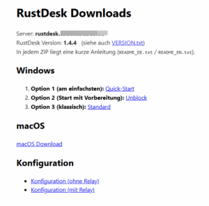 Frank, ich habe Rustdesk mal neu nach deiner Anleitung installiert und es hat alles geklappt. Ich kann Verbindungen aufbauen. Aber nur wenn ich den Relayserver mit eintrage. Auch die Webseite mit dem Clients ist echt super. Ich muss mich mal noch weiter damit beschäftigen. Aber vielen Dank für deine gute Anleitung.